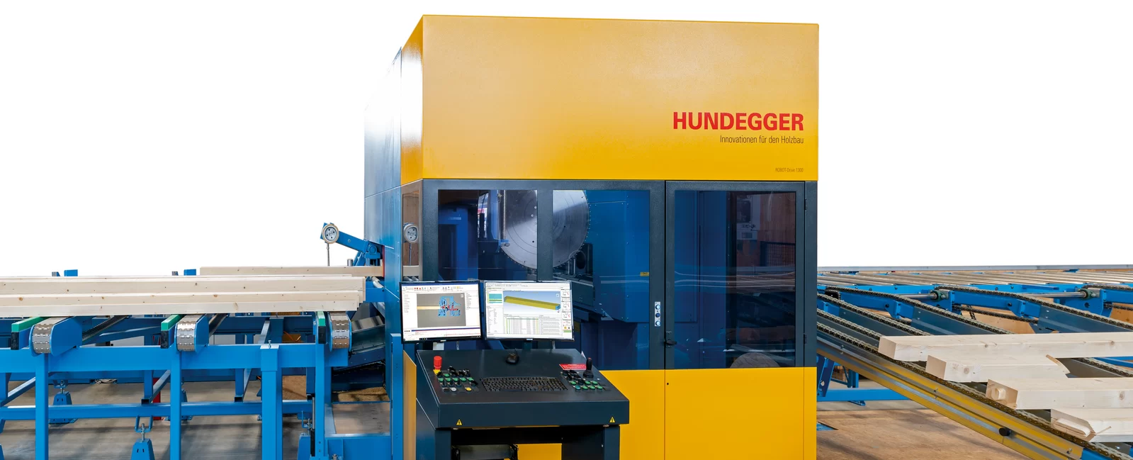 Met compacte afmetingen en een modulaire opbouw biedt de ROBOT-Drive een optimale flexibiliteit en vrijwel onbeperkte bewerkingsmogelijkheden voor balkhout, gebinten en brede gelamineerde liggers. Het basismodel zonder zaag aggregaat, de ROBOT-Drive Solo, is al een aantrekkelijk geprijsde allrounder. Voor bijkomende taken of indien het wensenprofiel wijzigt, kan de machine eenvoudig met de betreffende aggregaten worden uitgebreid. Bij de ROBOT-Drive worden alle gewenste bewerkingsstappen aan het onderdeel door een 6-assige aggregaat uitgevoerd, en wel in één cyclus.